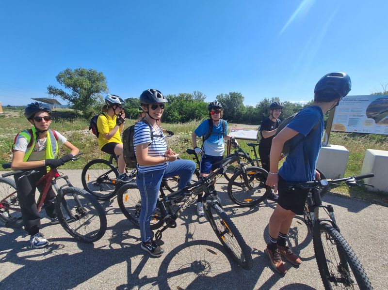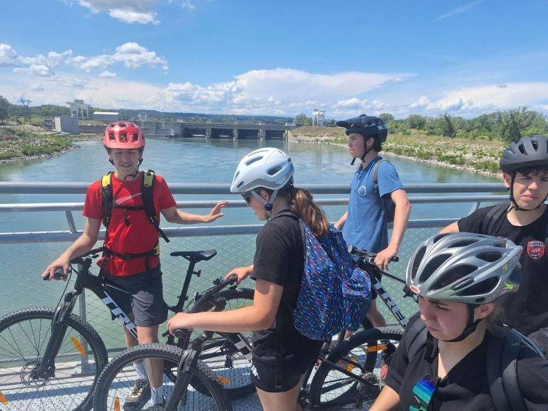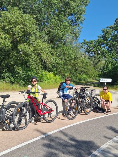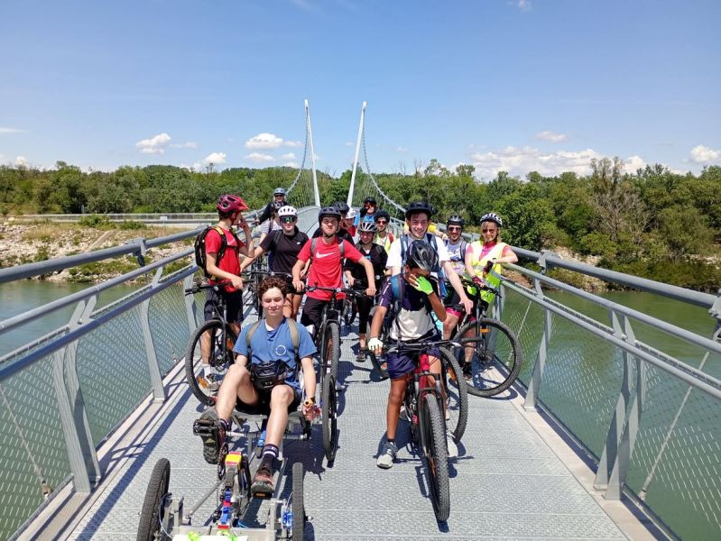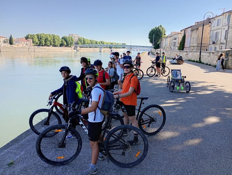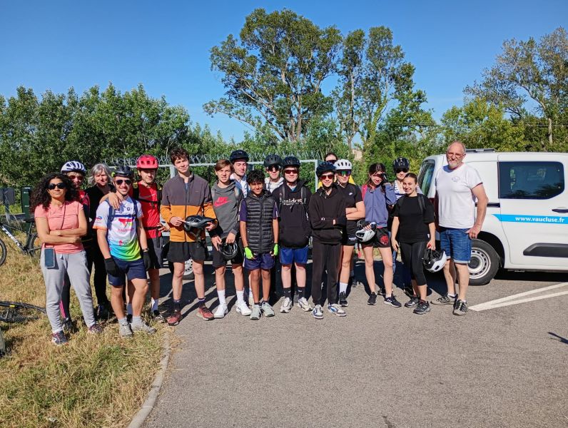 Après un départ de Mondragon, les 14 élèves et leurs accompagnateurs ont roulé sur la Viarhôna direction Avignon, M Rungette a piloté le prototype du véhicule alternatif construit par les élèves de 3e.