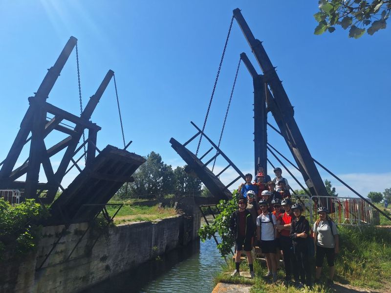 Tout est prétexte à nourrir intellectuellement les élèves : petit passage le long du Rhône en direction du musée bleu d’Arles puis pause culturelle devant le pont qui a inspiré Van Gogh.