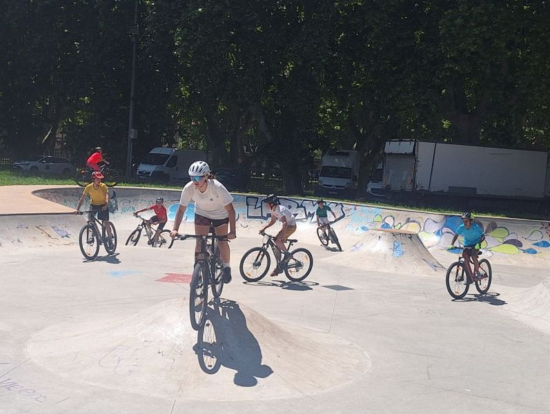 Nous avons quitté le camping d’Avignon direction Beaucaire pour la pause pique-nique où certains élèves faisaient une pause tandis que d’autres ont pu s’amuser à vélo dans le skate-park : ne sont-ils donc jamais fatigués ?!