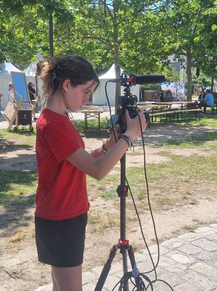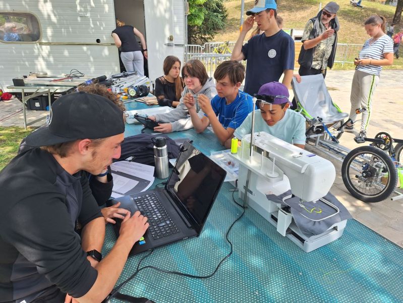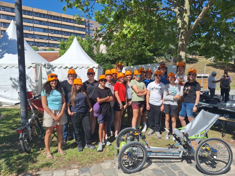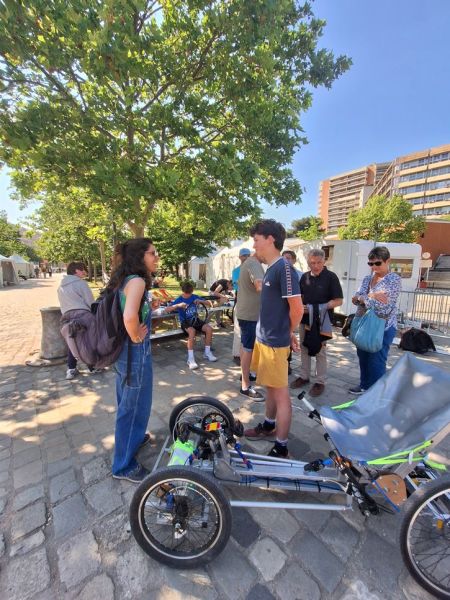 Nos élèves ont aussi assuré la partie communication du projet aussi bien auprès des visiteurs du parc que des médias locaux. Ils ont ainsi expliqué que c’était la 4ème promotion de 3èmes du collège qui avait travaillé et amélioré le prototype et qu’il s’agissait d’un projet rendant possible la fabrication par tout un chacun de ce quadricycle grâce à de la récupération et aux plans qui seront en open source sur Internet