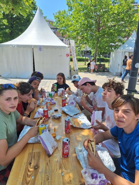 Après l’effort, le réconfort bien mérité : repas dans un petit restaurant, au menu Burgers et glaces, de quoi redonner des forces pour l’après-midi !